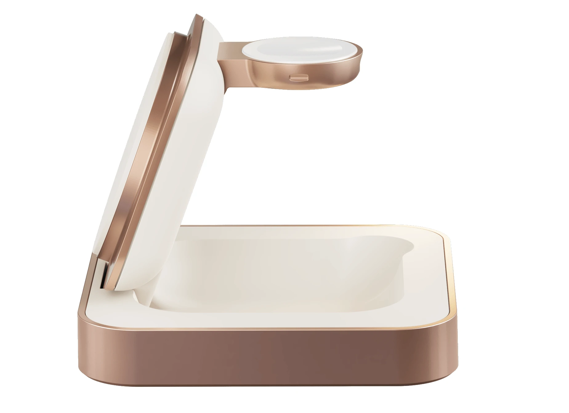 Der Nightstand Charger Pro 2 ist eine zuverlässige und bequeme Möglichkeit, Ihr Qi2- oder MagSafe-kompatibles Gerät sowohl im Hoch- als auch im Querformat drahtlos aufzuladen. Auf der Rückseite dieses Ladegeräts können Sie Ihre Apple Watch auch mit maximal 5 W aufladen.Schluss mit verhedderten oder kaputten Ladekabeln, die oft ausgetauscht werden müssen. Ihre Geräte verfügen über einen eigenen Ladeplatz, sodass Sie beruhigt sein können. Legen Sie einfach Ihr Telefon, Ihre AirPods oder Ihre Apple Watch auf das Ladegerät und der Ladevorgang startet automatisch. Das Ladegerät besteht aus hochwertigem Zink/Legierung und ist auf Langlebigkeit ausgelegt. Der Nightstand Charger Pro 2 bietet eine Ladeleistung von bis zu 15 W.